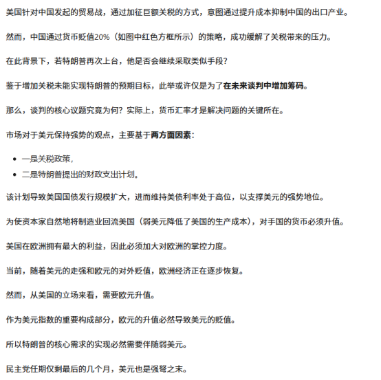 但是笔者提出逆市场共识的,即随着特朗普的上任,美元指数或将下一个台阶运行。特朗普的核心需求的实现必然需要伴随弱美元。